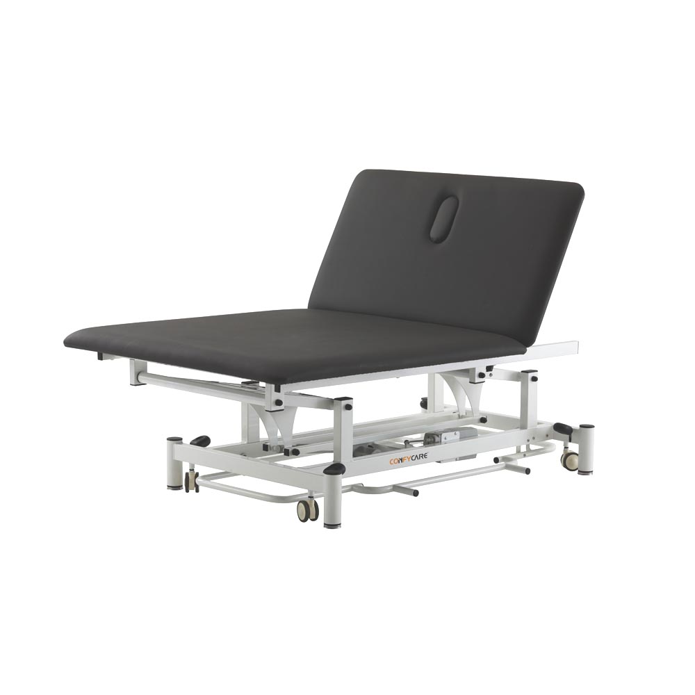 Electric 2-Section Bobath Table offers foot switch adjustable height, which allows for both patient and therapist comfort. With Nose Hole and retractable castors 75mm for excellent mobility and safety. The Synergy-C Treatment tables are all covered with medical PVC leather: fire, stain, mildew, oil, water, and even wear-resistant.