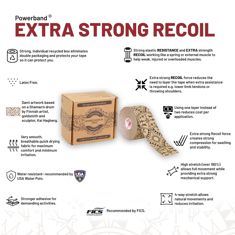 Dynamic Tape Powerband represents a significant advancement in therapeutic taping technology, offering unmatched energy storage, resistance, and recoil for demanding clinical and performance applications. Unlike kinesiology tape, Dynamic Tape Powerband is designed to mechanically assist movement by absorbing load and returning energy, helping to reduce strain on injured or overloaded tissues.
