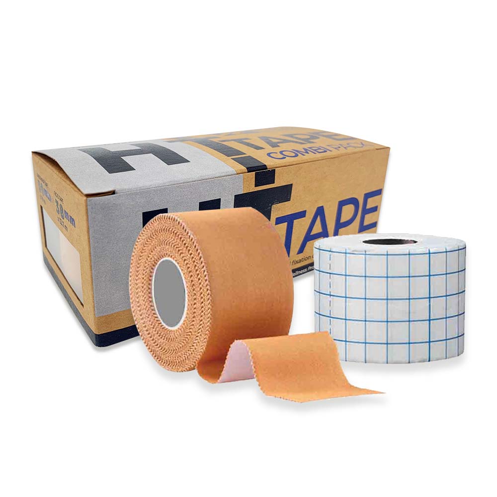 The Combi Pack allows the use of a safe low allergy underwrap/pre-wrap to prepare and effectively protect the skin combined with a super strong rigid strapping tape to stabilize the relevant area being taped. The rigid tape has a very strong latex-based adhesive, while the Fixit underwrap has a very low allergy-based adhesive. The tape combination is a cost-effective option and can be used for taping the knee, ankle, shoulder, and lower back, as well as other applications.