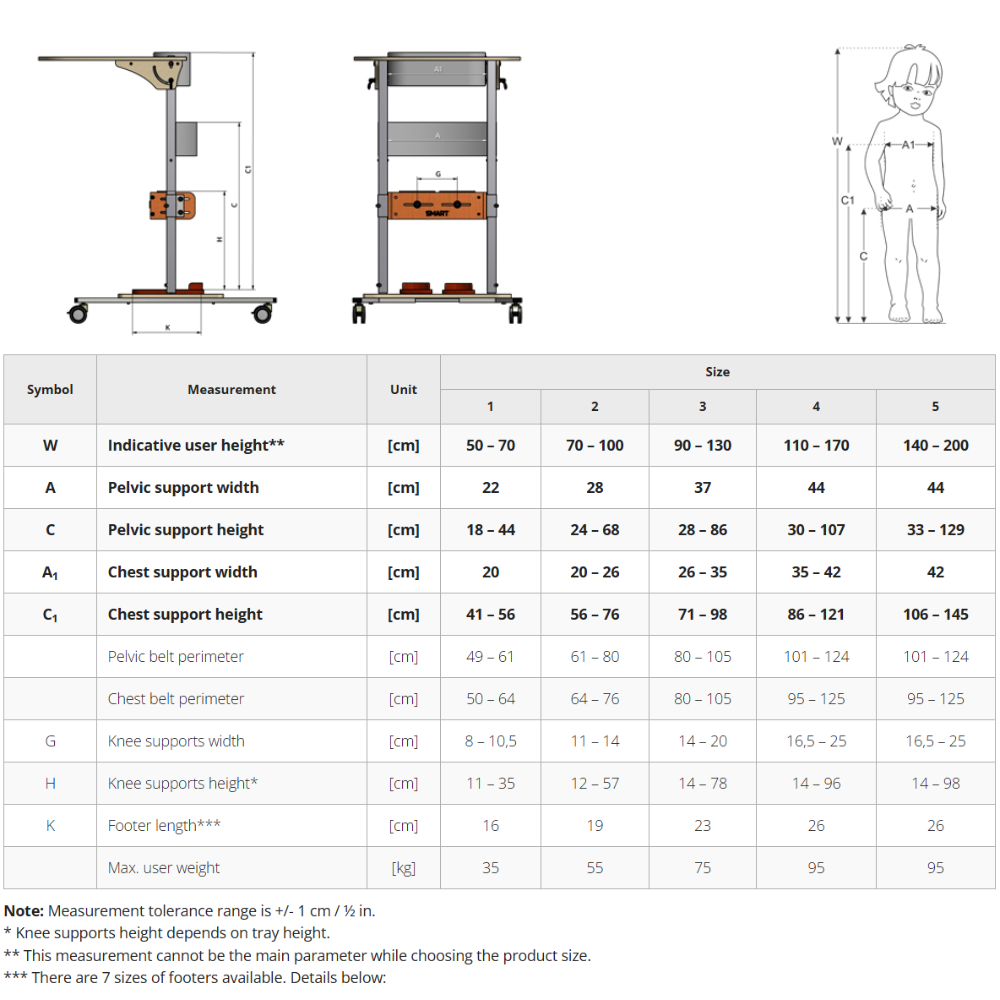 SMART PRO™ is a modern standing frame that enables a user to adopt an upright position, is easy to use, highly durable and stable. Through the use of innovative, smooth, and stepless adjustment, we have reduced the number of size variations from 8 to 5 while maintaining the full range of adjustments, at the same time increasing the comfort and ability of the stander to adapt to the user. SMART PRO™ grows with the user.