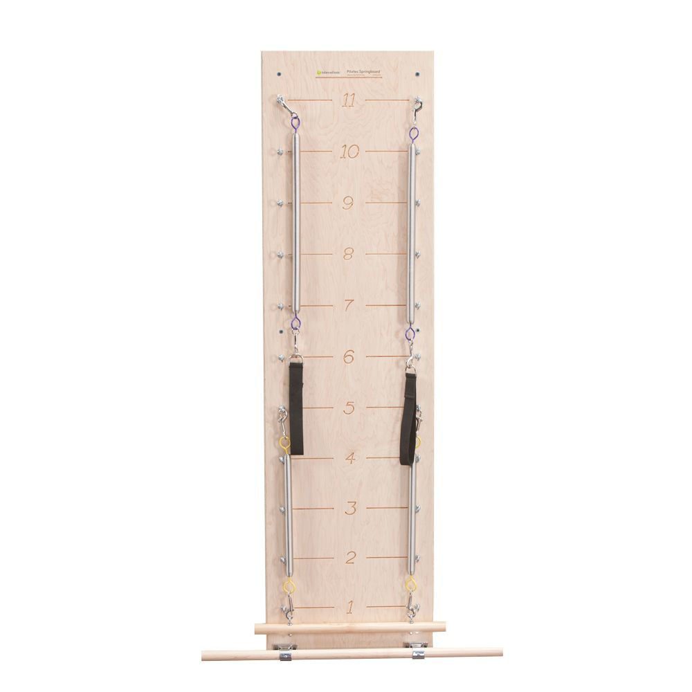 Designed by master teacher Ellie Herman, our very popular Pilates Springboard with Push Thru bar is an affordable, space-saving piece of Pilates equipment that provides an invigorating full-body workout. The Springboard bolts to the wall, so it doesn’t take up floor space. This makes it perfect for an extra room, a home gym, garage, attic, or basement. If you own a Pilates studio or fitness facility, you can mount several Springboards along a wall and offer group equipment classes. With the Push Thru bar, you can increase your options to perform even more Trapeze Table exercises! The anodized aluminium bar quickly and easily attaches to your existing Springboard (mount brackets and hardware included). You don’t need to remove, change, or alter your installed Springboard in order to install the push-through bar.