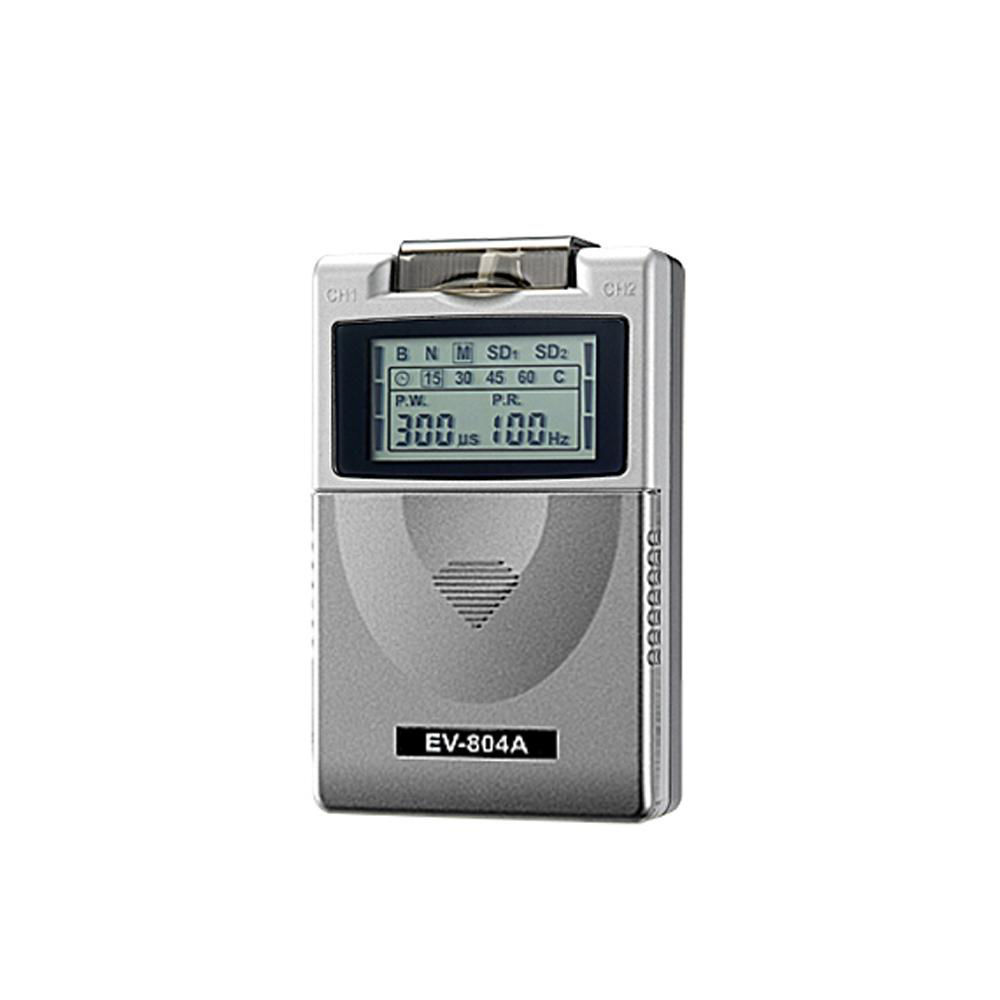 The EV-804A DIGITAL TENS is a battery operated pulse generator that sends electrical impulses through electrodes to the body and reaches the nerves causing pain. The device is provided with two controllable output channels, each independent of the other. An electrode pair can be connected to each output channel.