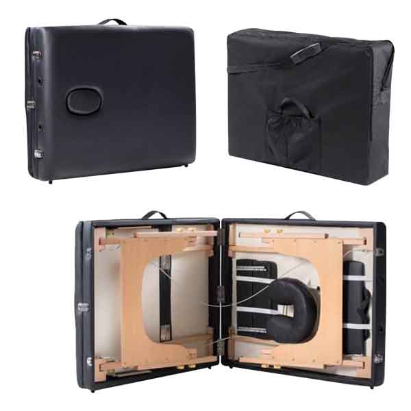 The Synergy portable massage table is a 3 section massage table with a backlift function and offers a face hole and filler with outlets on both ends for the headrest. This bed is made from hardwood that is treated by clear lacquer coating and comes with a 1-year warranty on the framework only.