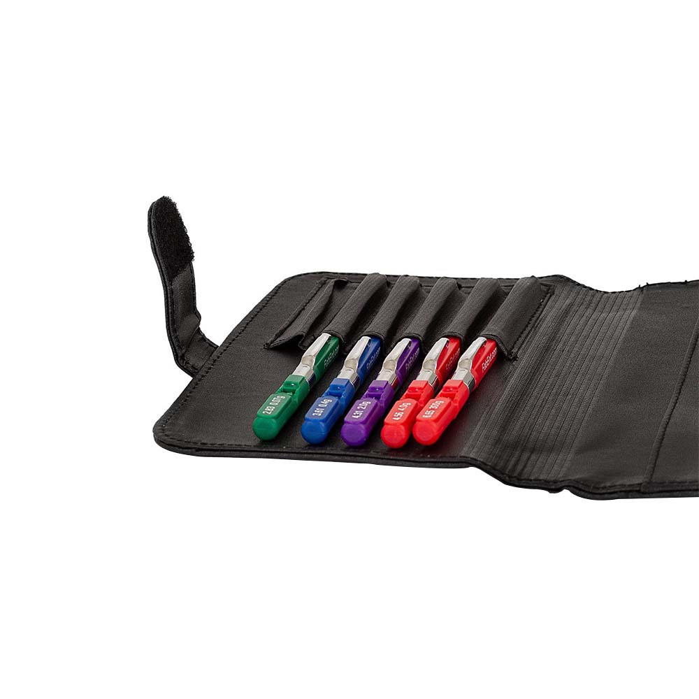 The Baseline Fold-Up Monofilament evaluator is used to measure the cutaneous sensory perception threshold. The monofilament test provides a non-invasive evaluation with objective and repeatable results. Each monofilament represents a unique amount of force which is marked by force and size. These monofilaments feature an easy-to-fold nylon filament for protection as well as easy storage and portability.