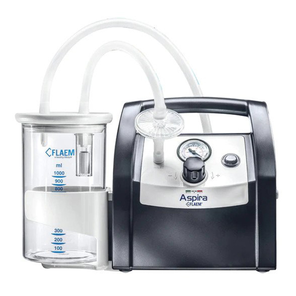 Suitable for use in health care facilities such as hospitals, for home care and for pharyngeal suctioning. In compliance with ISO 10079-1 Standard. The declared flow has been tested and validated by TUEV Rheinland. The case is built with top quality plastics, ensuring robustness during heavy-duty and at the same time reducing weight for easier transport through the conveniently integrated handle. The bottle holder can be placed on the right or on the left side of the device, it houses a one-litre graduated PC bottle. This and the silicone connection tubes can be sterilised for optimum hygiene. It fits a hydrophobic antibacterial high-efficiency filter.