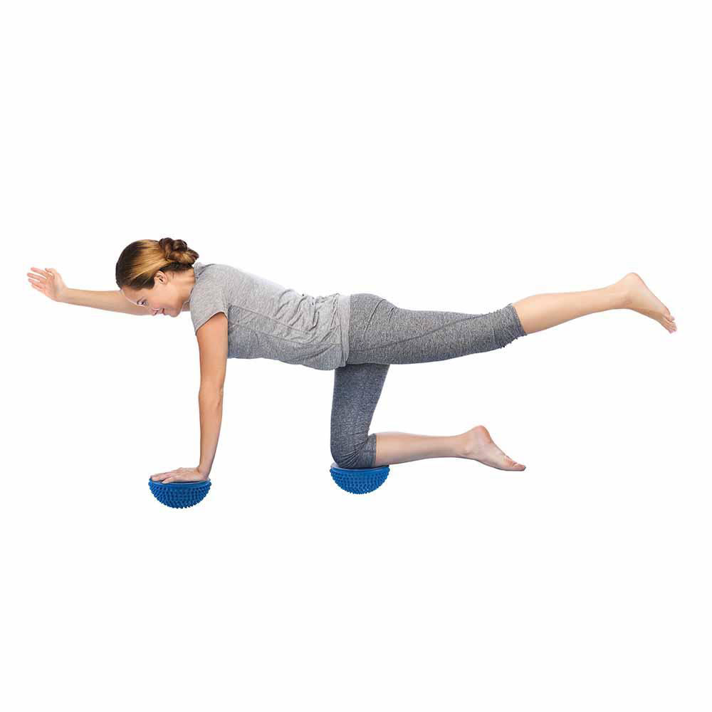 The balance dome can be used either flat side up or pebble side up, depending on skill level.