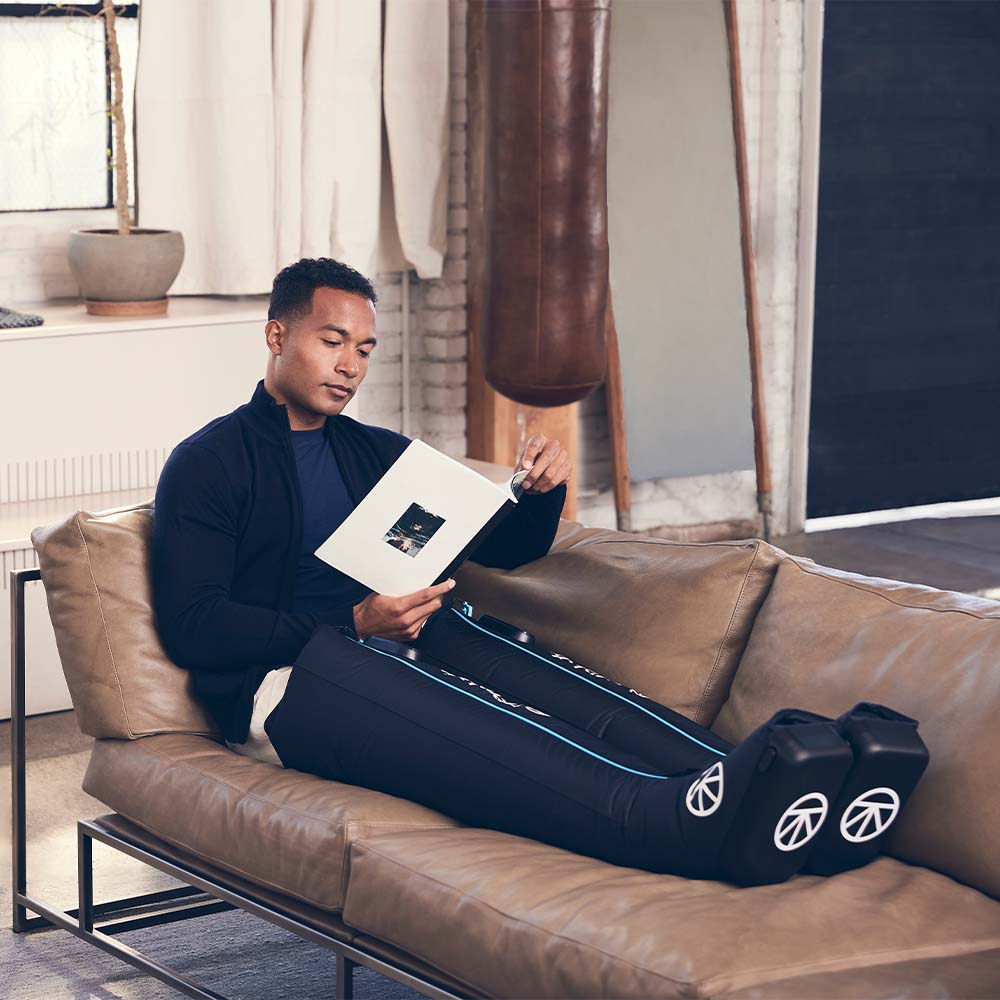 Our system lets you set your desired pressure for every session and monitors it according to the size of the limb being treated. Adjust your settings in the Therabody App via Bluetooth.