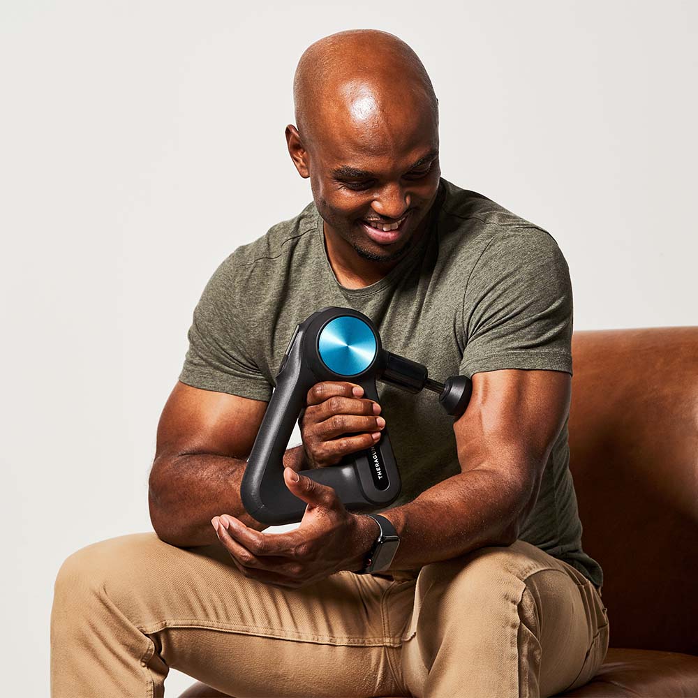The most powerful commercial-grade percussive therapy device with the features pros know and trust. Top-of-the-line deep muscle treatment is more personalized than ever, thanks to the guided app experiences, which help to reduce muscle soreness, improve mobility, and increase relaxation. The Theragun PRO, with continuous battery life, a rotating arm, and an industry-leading 2-year warranty, is the most advanced recovery tool for both professionals and everyday people.